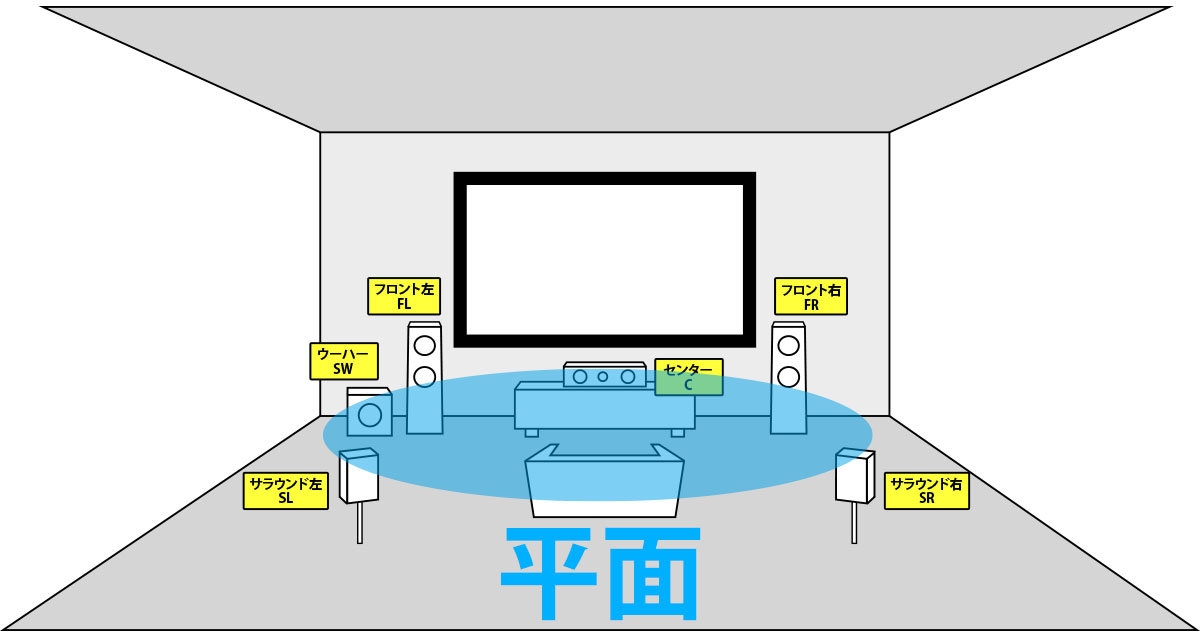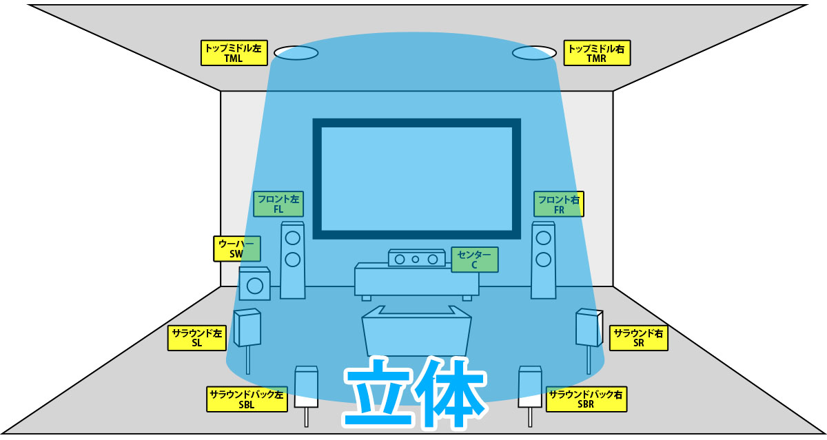 かつてのサラウンド(5.1chや7.1ch)は、音を「水平方向(前後左右)」に配置するものでした。