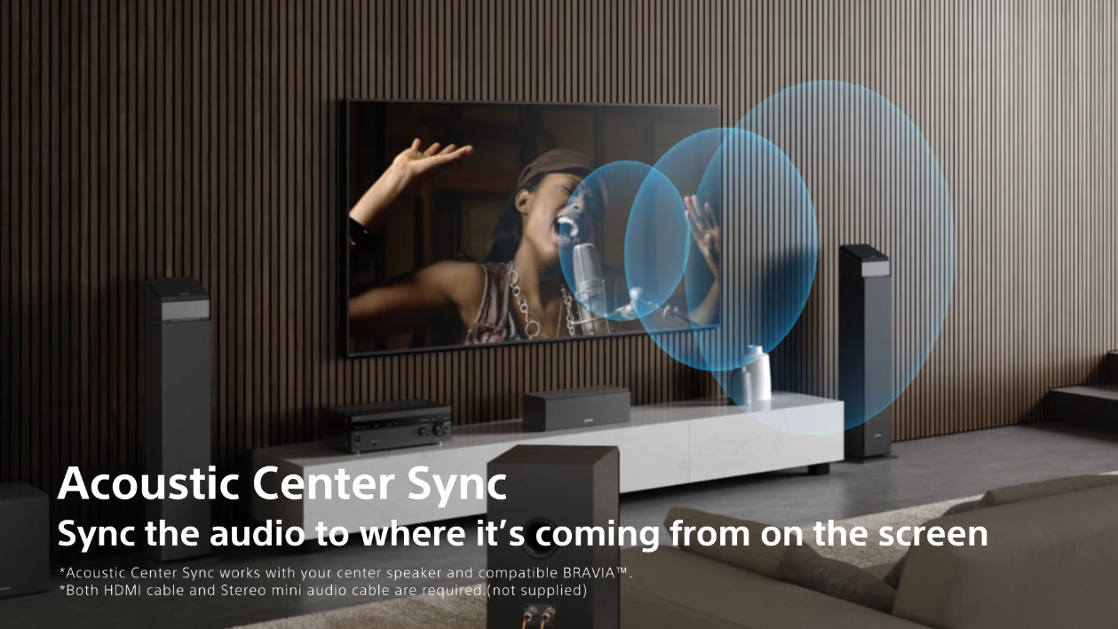 これは、テレビ本体のスピーカーを、サウンドバーの「センタースピーカー」として統合するSONY独自の技術。