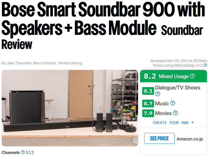 出典:RTINGS.com |Bose Smart Soundbar 900 with Speakers + Bass Module Soundbar Review