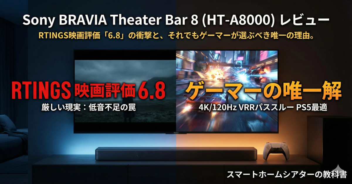 【プロの結論】Sony BRAVIA Theater Bar 8 (HT-A8000) レビュー。RTINGS映画評価「6.8」の衝撃と、それでもゲーマーが選ぶべき唯一の理由。