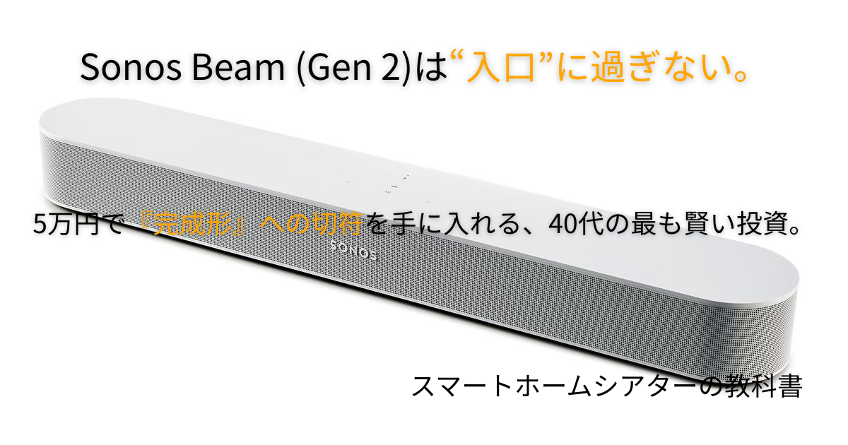 40代からのホームシアター構築、ありがとうございます。シアターコンシェルジュのナオキです。 「Sonos Beam (Gen 2)」は、そのコンパクトさとDolby Atmos対応で非常に人気のあるサウンドバーですよね。 しかし、当ブログ「スマートホームシアターの教科書... -