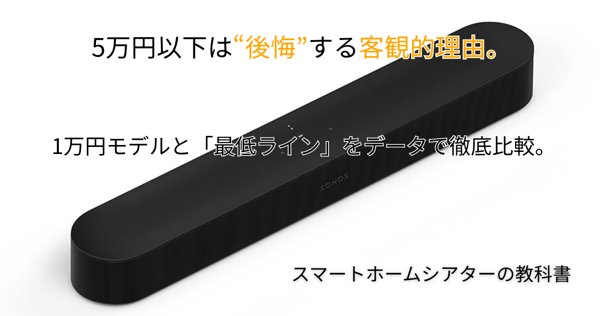 【専門家がデータで断言】5万円以下のサウンドバーで“後悔”する客観的理由。3万円・1万円モデル(SONY HT-S100F等)と「最低ライン(Sonos Beam)」をRTINGSデータで徹底比較。