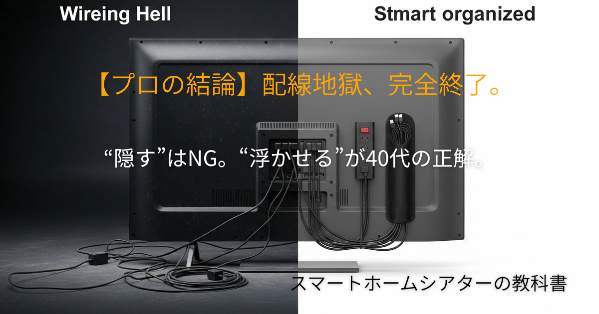 「音の結論(サウンドバーセット)」を手に入れ、「映像の結論(大型テレビ)」も手に入れた。しかし、なぜか“異次元の没入感”に浸りきれない……。 シアターコンシェルジュのナオキです。その原因、わかります。あなたの視界の隅に、生活感丸出しの「配線地... -
