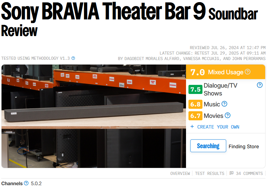 (引用: RTINGS.com | Sony BRAVIA Theater Bar 9 Soundbar Review)