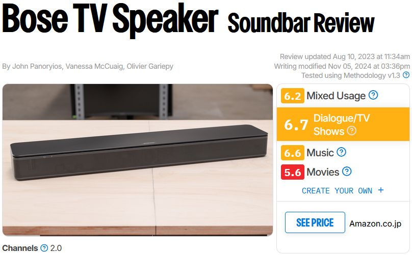 出典:RTINGS.com | Bose TV Speaker  Soundbar Review