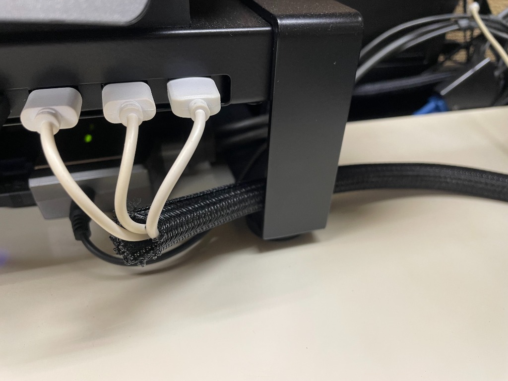 - 柔らかいメッシュ素材なので、配線の取り回しが非常に柔軟。プラスチック製のようにゴワゴワしません。通気性が良いのも安心です。